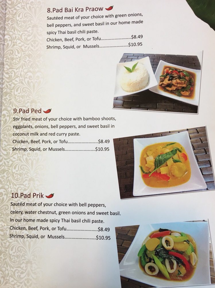 Stir-fried meat of your choice with bamboo shoots, eggplants, onions, bell peppers and sweet basil in coconut milk and red curry paste sauce.